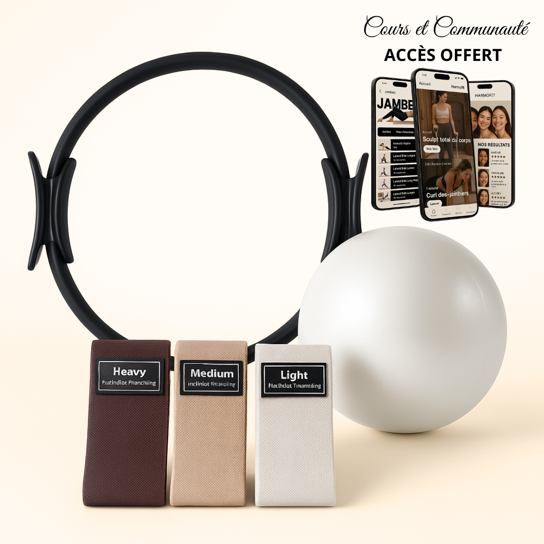 • 1 Anneau Pilates (Magic Circle) – pour tonifier bras, jambes et centre sans impact